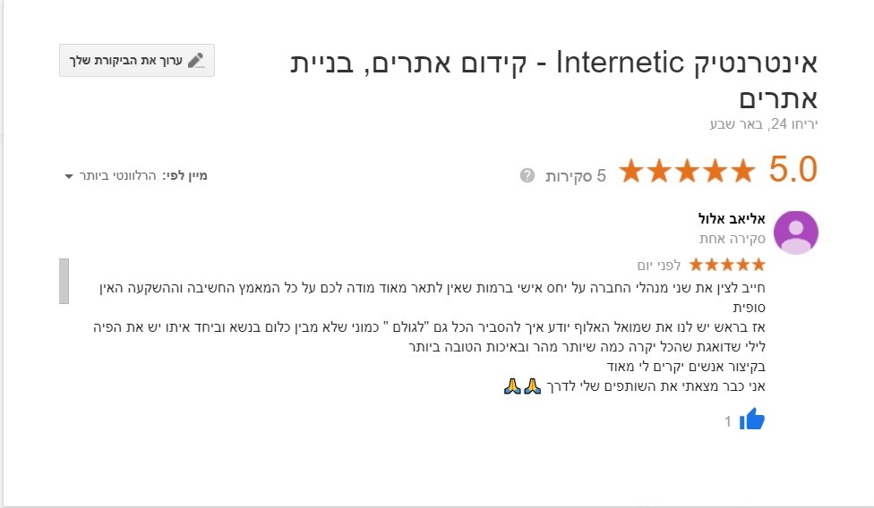 חייב לציין את שני מנהלי החברה על יחס אישי ברמות שאין לתאר מאוד מודה לכם על כל המאמץ החשיבה וההשקעה האין סופית